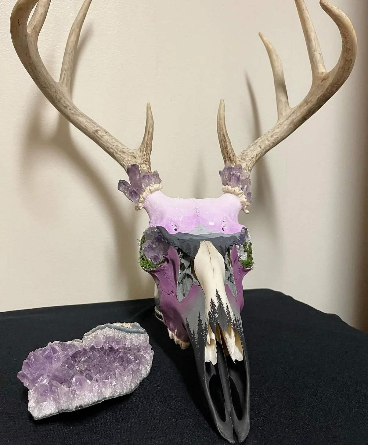 When I am not on the computer.. you will find me in the forest. I make unique creations from foraged items, acrylics, old wood, animal bones and more. All items are hand painted!